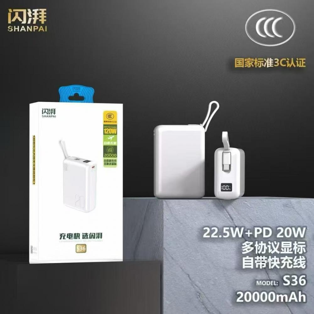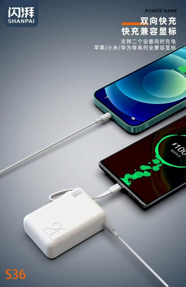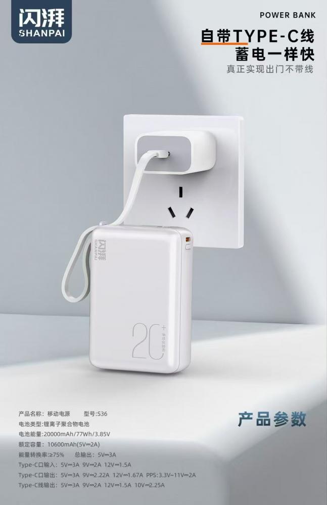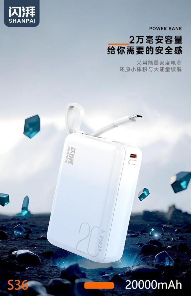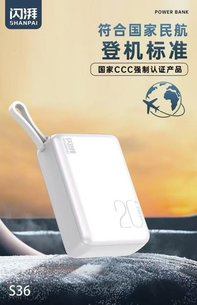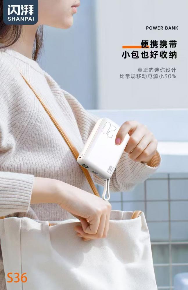 闪湃s36快充电源 2万毫安 最小体积 uv幻彩白工艺 充电宝
